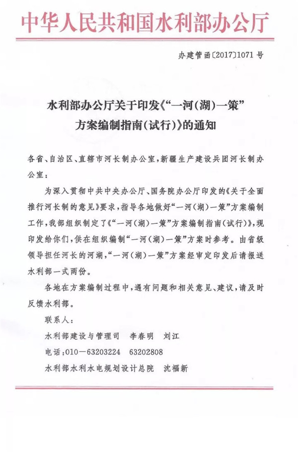 水利部辦公廳關(guān)于印發(fā)《"一河(湖)一策”方案編制指南(試行)》的通知